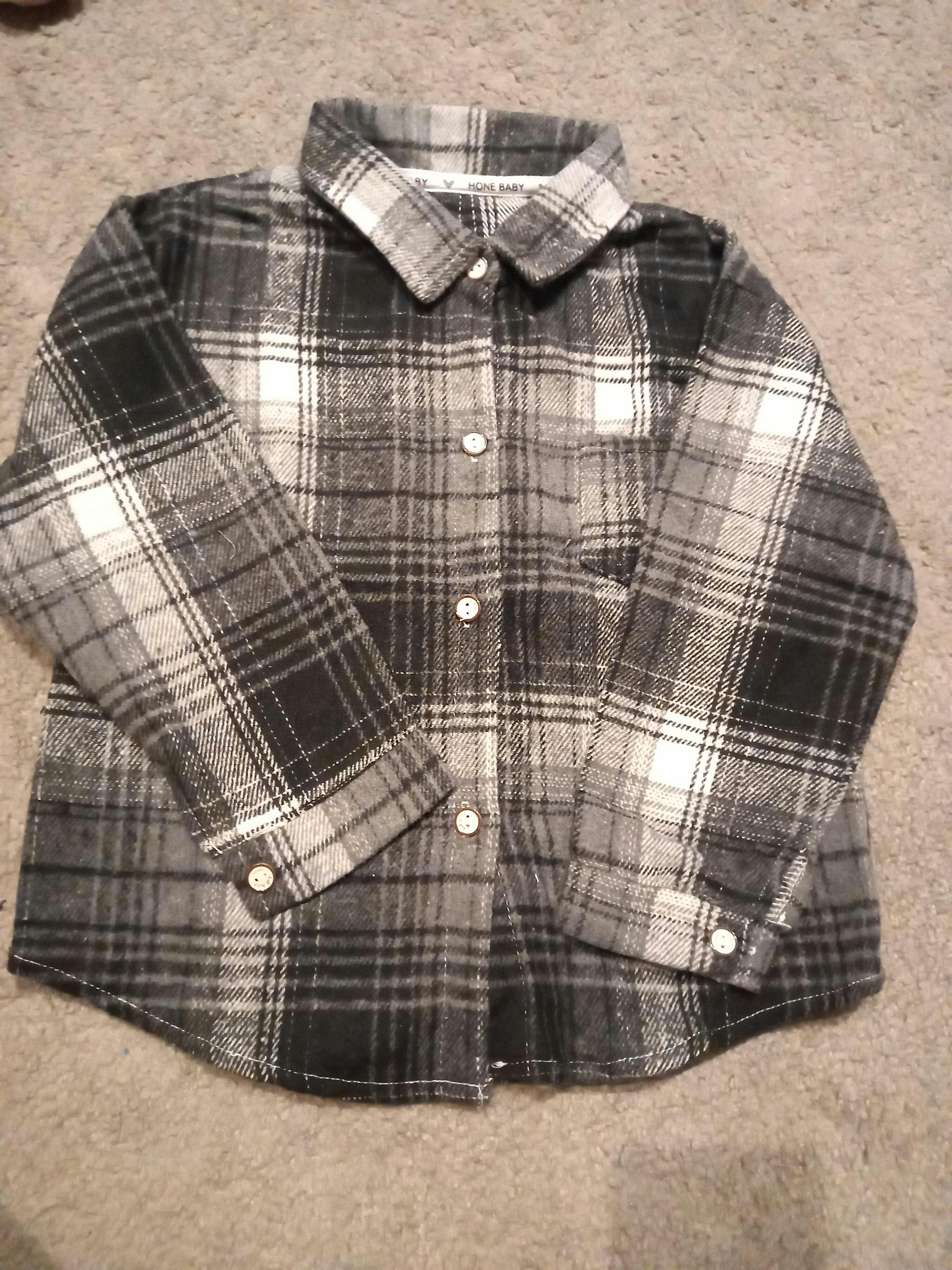 Boys Flannel Buttondown Checkered Shirt-Black - 1-2Y